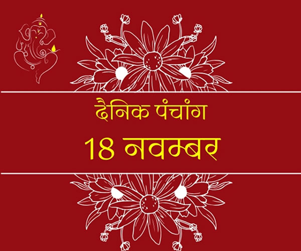 आज का पंचांग. संवत्सर – 2081 दिनांक – 18.11. 2024 माह – मार्गशीर्ष कृष्ण पक्ष दिन – सोमवार तिथि – तृतीय सायं 5:56 तक, उपरांत चतुर्थी चंद्रमा – मिथुन नक्षत्र- मृगशिरा दोपहर 3:49 तक, उपरांत आर्द्रा योग- सिद्ध सांय 5:23 तक, उपरांत साध्य सूर्य – वृश्चिक राशि में है. राहुकाल – सुबह 7:30 से सुबह 9:00 तक दिशाशूल- पूर्व दिशा पंचक-आज नहीं है भद्रा- सुबह 8:02 से शाम 6:57 तक (स्वर्ग) व्रत/त्योहार- संकष्टी गणेश चतुर्थी सूर्योदय प्रातः 07:03 सूर्यास्त सायं: 05:43