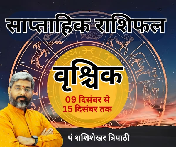Weekly Horoscope: ( 09 दिसंबर से 15 दिसंबर 2024): वृश्चिक राशि के जातकों के लिए कार्यस्थल पर दबाव और जिम्मेदारियों का बोझ महसूस हो सकता है, जिससे काम के परिणाम उम्मीद के मुताबिक नहीं रह सकते। इस दौरान व्यापारियों को अपने शब्दों और व्यवहार पर नियंत्रण रखना चाहिए ताकि किसी तरह की गलतफहमी या विवाद से बच सकें। स्वास्थ्य के मामले में भी यह सप्ताह सतर्क रहने का है। छोटी-सी लापरवाही से समस्या बढ़ सकती है, इसलिए खुद की सेहत का ख्याल रखना जरूरी है।